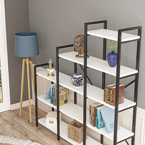 ספרייה קלאסית ומעוצבת בעיצוב מודרני, הכוללת חמישה מדפים מעץ איכותי בשילוב מתכת חזקה ויציבה.