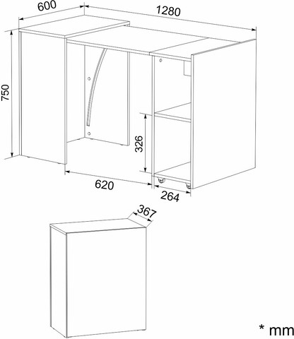 מצב פתוח: רוחב 128, עומק 60, גובה 75.